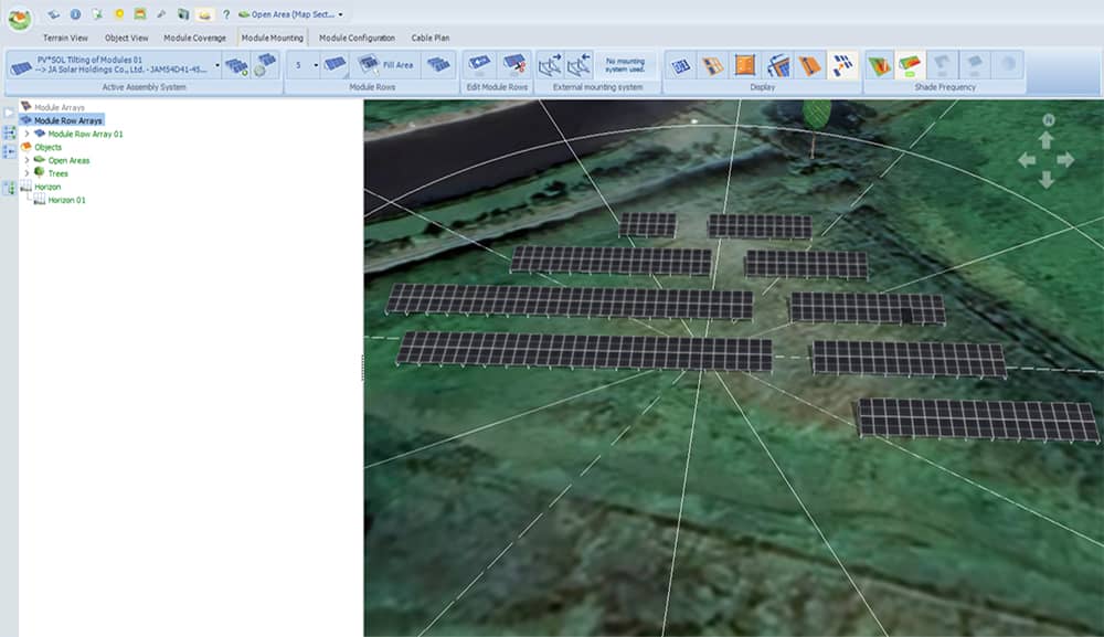 Our process combines specialist PV design software with planning and environmental programmes to produce accurate, compliant designs.