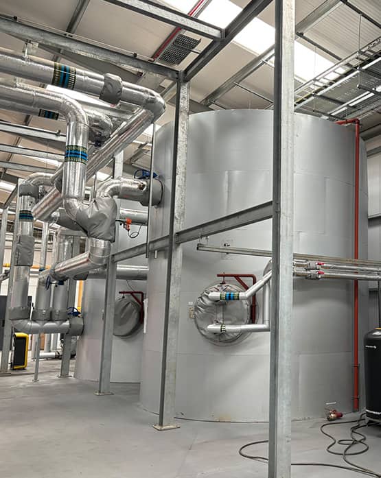 The water source heat pump at VENJ draws renewable heat directly from the River Tyne. The system is supported by;